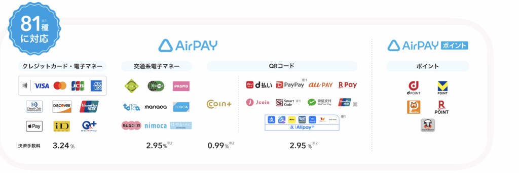 エアペイの最大の特徴は、1台のカードリーダーで81種類もの決済方法に対応している点です。