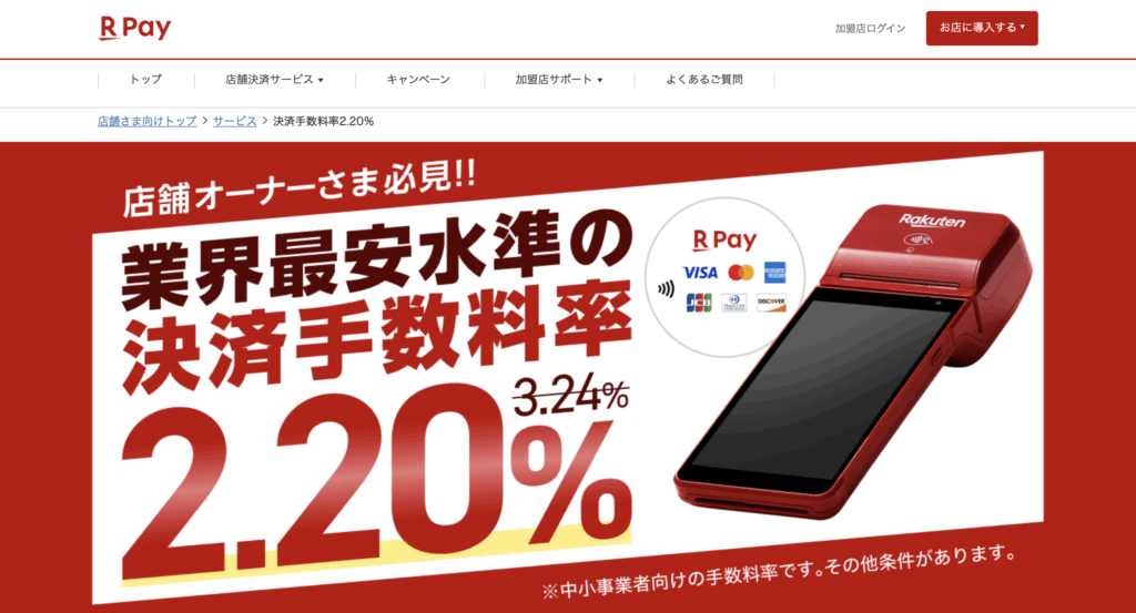 決済端末代金 | 0円〜 |
