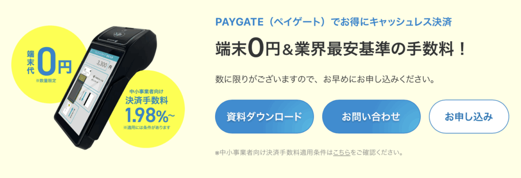 ペイゲートは月額3,300円の利用料がかかるため、決済件数が少ない店舗では負担に感じる可能性があります。