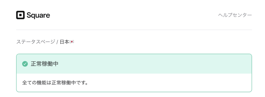 Squareは公式のステータスページを提供しており、システムの稼働状況をリアルタイムで確認できます。